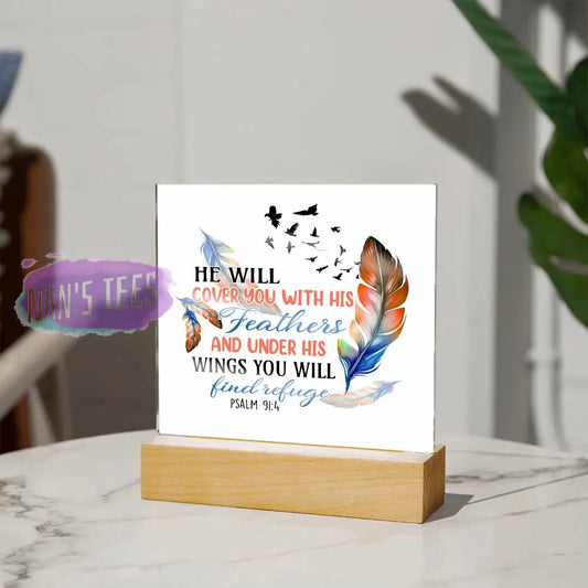 Acrylic Square Plaque | He Will Cover You With His Feathers | Psalm 91:4