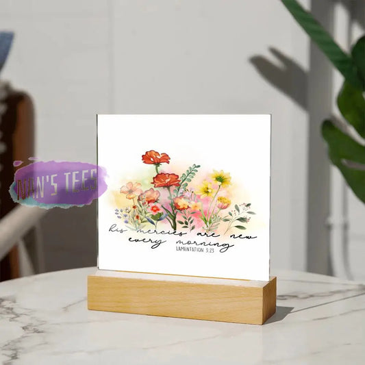 Acrylic Square Plaque | His Mercies Are New Every Morning | Lamentation 3:23