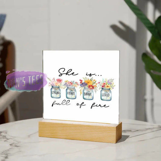 Acrylic Square Plaque | She is Full of Fire | Strong Fierce Brave Loved