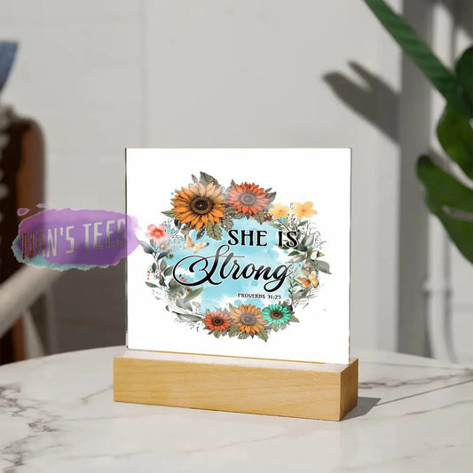 Acrylic Square Plaque | She Is Strong | Proverbs 31:25