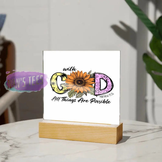 Acrylic Square Plaque | With God All Things Are Possible | Matthew 19:26