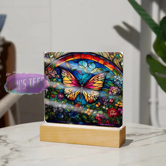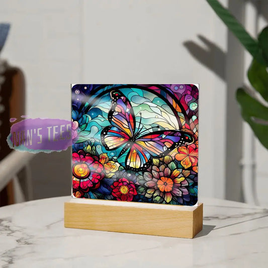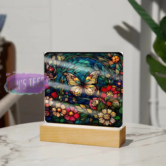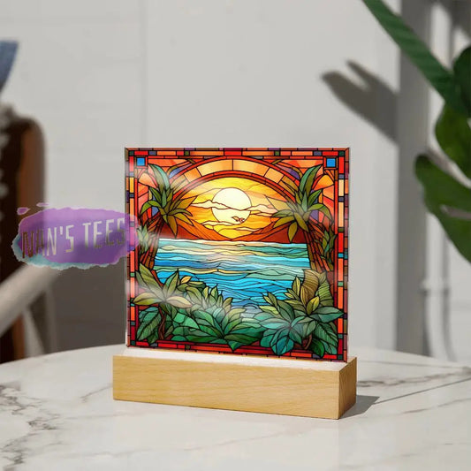 Stained Glass Summer Beach Scene Acrylic Square Plaque