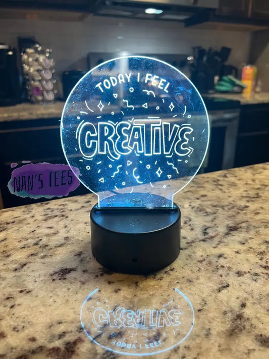 Affirmation "Today I Feel Creative" Engraved Clear Acrylic 3D LED Night Light with Base and Remote