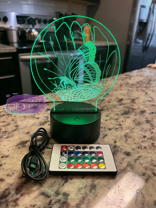 Butterfly Engraved Clear Acrylic 3D LED Night Light with Base and Remote