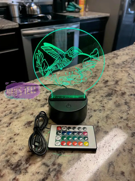 Hummingbird Engraved Clear Acrylic 3D LED Night Light with Base and Remote