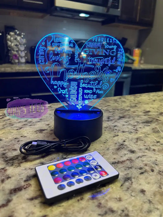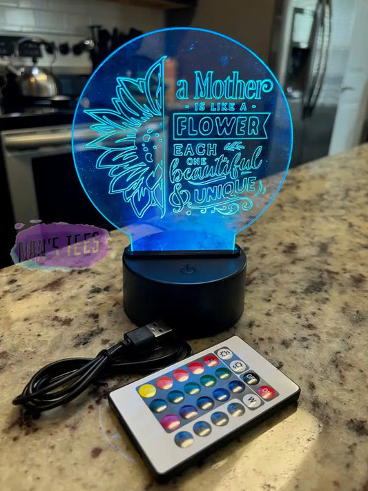 Mother's Day Engraved Clear Acrylic 3D LED Night Light with Base and Remote