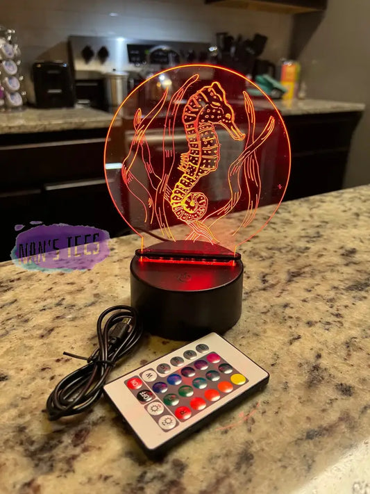 Seahorse Engraved Clear Acrylic 3D LED Night Light with Base and Remote