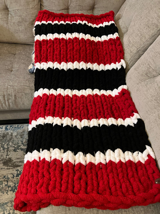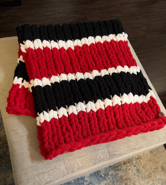Custom Hand-Knit Chunky Throw Blanket | Red, White & Black | Ultra Soft & Cozy